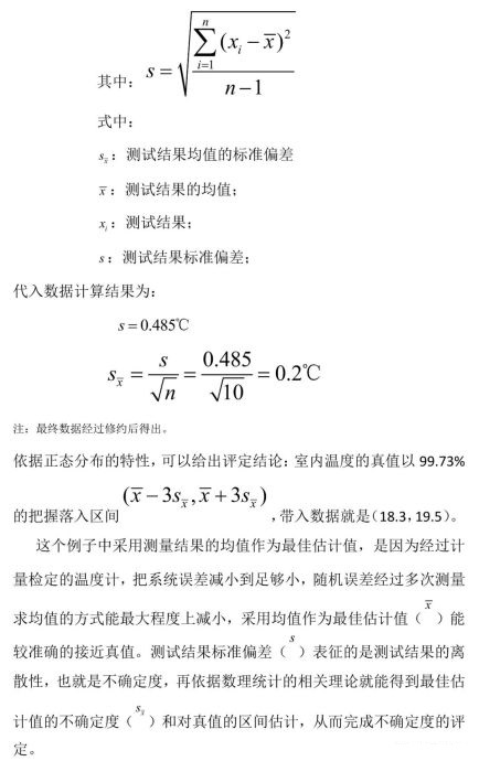 从上面的例子也可以看出,要得到合理的不确定度的评定结果,必须使用经过计量检定的器具,如果使用的温度计有较大的系统误差,不确定度的评定结果可能就不能包含真值,这样就失去了不确定度评定的意义。
